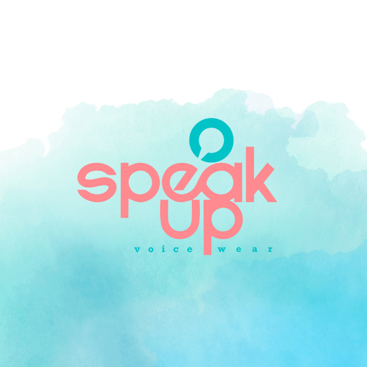The SpeakUp Voicewear logo represents breaking the cycle of not being heard. Teal is aligned with the color of sexual abuse awareness. The break in the circle stands for breaking the silence, and the symbol is a chat bubble, reminding us to speak up.